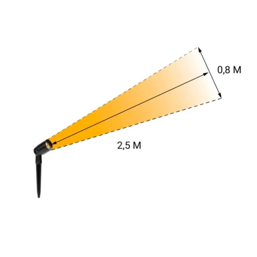 Neso is a very affordable small spotlight that you can use to illuminate small plants, stones or other details in the yard. It has a fixed 2w led unit and a ground spike and the angle of the lamp is adjustable.