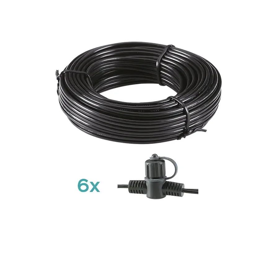 The length of this main cable is 15 meters and it has a model of 6 connectors for lamps or cable.