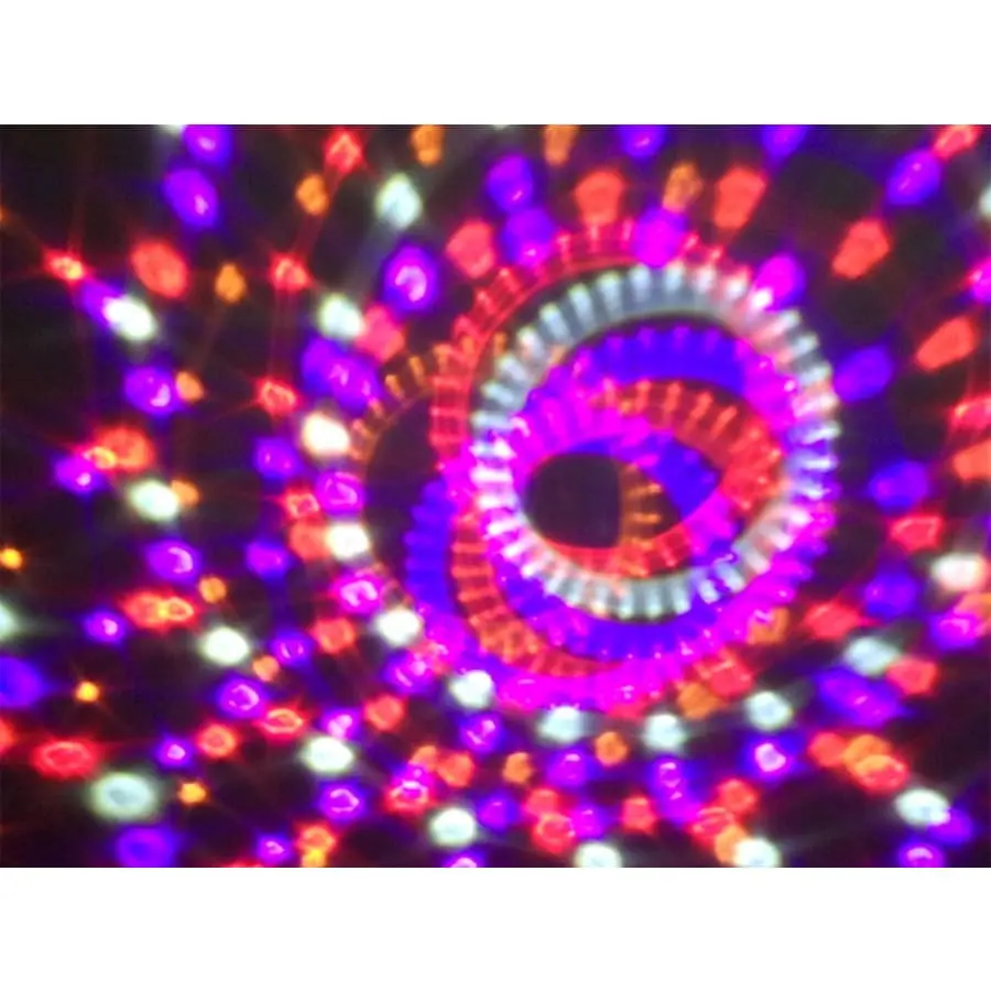 En niofärgad LED-boll som lyser upp även ett stort rum fint genom att reflektera färgglada strålar och rörliga cirklar över hela rummet. Fjärrkontrollen gör den enkel att använda. Mycket enkel att använda, koppla in enheten i väggen och lampan börjar fungera!