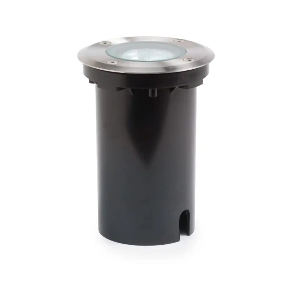 Konstsmide Groundspot 7606-000 marklampa, IP65, längd 11 cm, bredd 11 cm, höjd 15 cm, klarglas, stål/aluminiumstomme, karossfärg rostfritt stål, glödlampa GU10 max 1x7W ingår ej, reservglas kan beställas separat med kod 7606-001