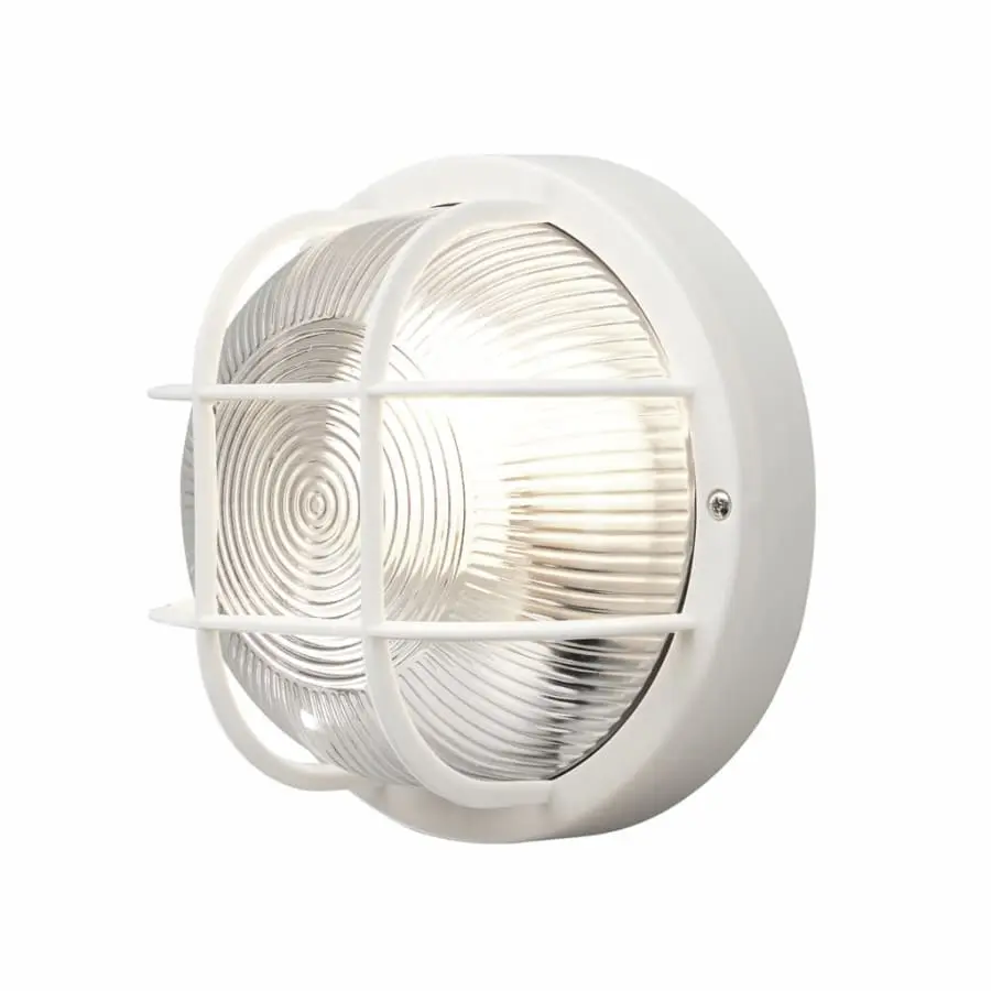 Konstsmide Mantova 7651-200 outdoor wall lamp, IP44, length 10.5 cm, width 18.5 cm, height 18.5 cm, grooved clear glass, body plastic, body color white, bulb E27 max 1x40W not included, bulb max height 110 mm , double insulated class II