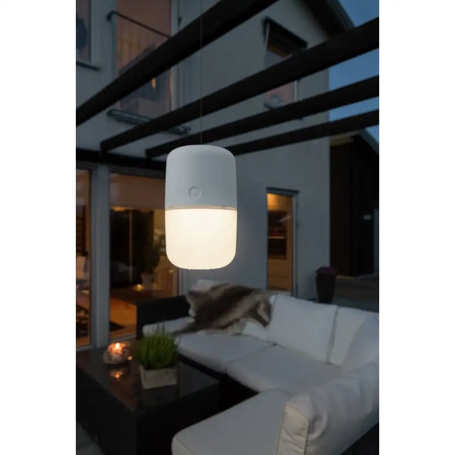 Konstsmide Assisi SOLAR 7805-202 stämningslampa, IP44, längd 12 cm, bredd 12 cm, höjd 19,5 cm, kroppsplast, kroppsfärg vit/vit, fast LED 1x1W, 100/40/10lm, 3000K, dimbar, fungerar med solcell laddning eller Med USB-kabel, brinntid 15h med full batteriladdning