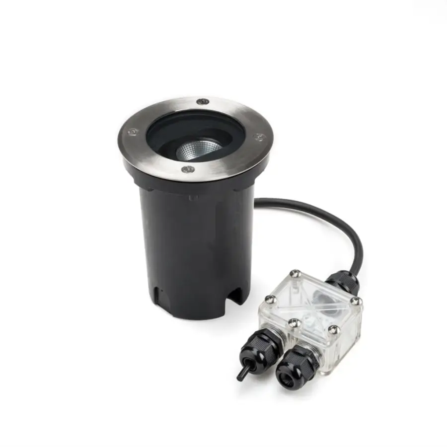 Konstsmide Ground spot 7856-310 ground lamp, IP65, length 12 cm, width 12 cm, height 15 cm, clear glass, frame steel/aluminum, frame color stainless steel, 550lm, replaceable LED 1x5W, 3000K, the opening angle of the light can be adjusted