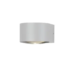 Konstsmide Gela 7882-250 utomhusvägglampa, IP54, längd 15,5 cm, bredd 11 cm, höjd 6,5 cm, linsformigt böjt klart glas, kropp aluminium, kroppsfärg vit, 980lm, fast LED 2x6W, 3000K, upp-ned-ljus, burkkedja , push-in- kopplingsdosa