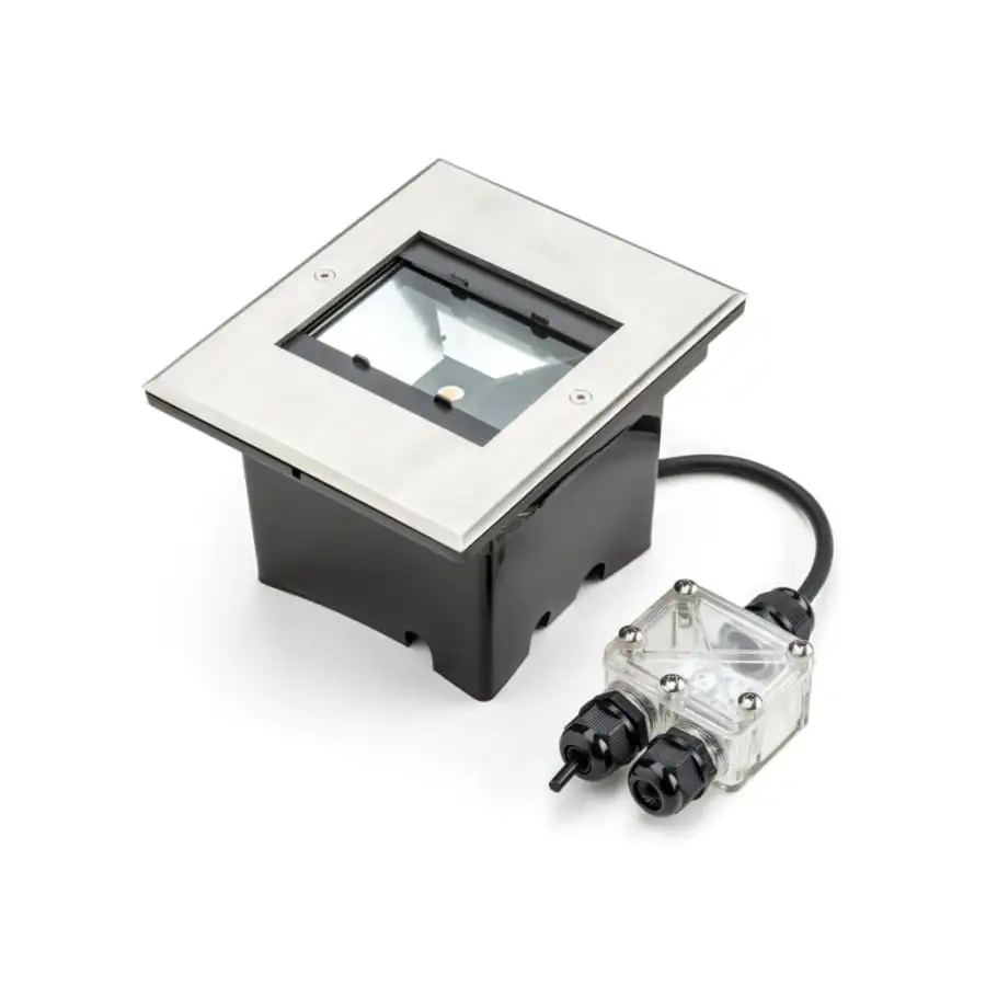 Konstsmide Ground spot 7995-310 ground lamp, IP65, length 18.5 cm, width 15.5 cm, height 11.5 cm, clear glass, frame steel/aluminum, frame color stainless steel, 900lm, replaceable LED 1x10W, 3000K, suitable dimmable, adjustable light opening angle