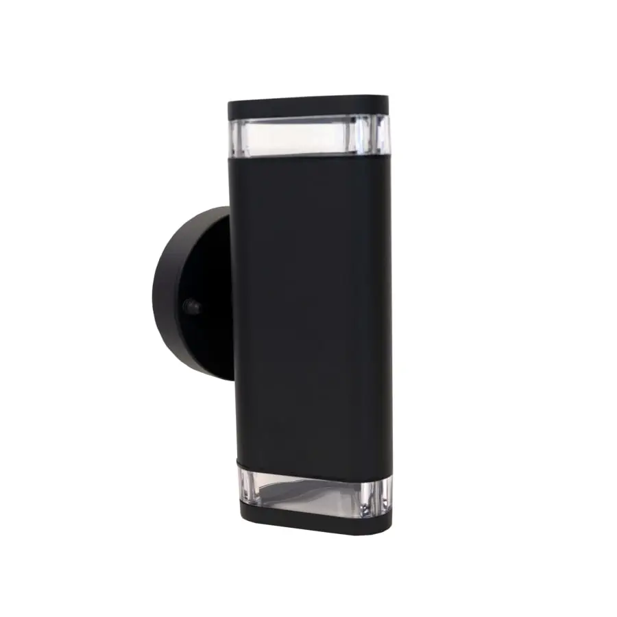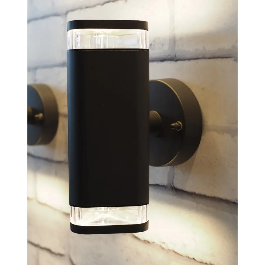 Stylish two-way wall light for indoor and outdoor use.