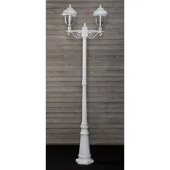 Snygg och högkvalitativ 2-delad stolplampa för trädgården eller längs stigarna. Lampans kropp är gjuten lättmetall, som avslutas med tre lager färg.