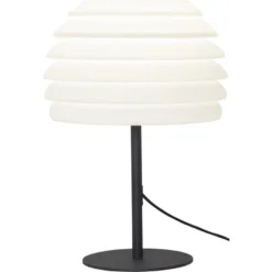 - Lampans kupol är av vit plast och det stadiga benet är i svart metall.