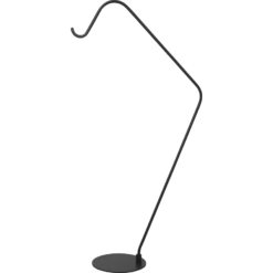 Ett svart metallstativ avsett för utomhusbruk, på vilket du kan hänga till exempel en solcellslykta eller koppla en utomhusbelysningssladd, lämplig för utomhusbruk
