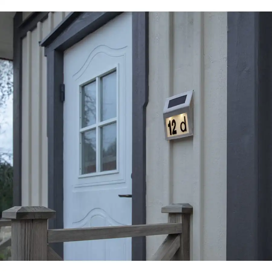 En solcellsdriven vägglampa vars skymningssensor tänder ett varmvitt ljus när skymningen kommer. När den är fulladdad brinner lampan i cirka 6 timmar. Lampan har ett varmvitt ljus.